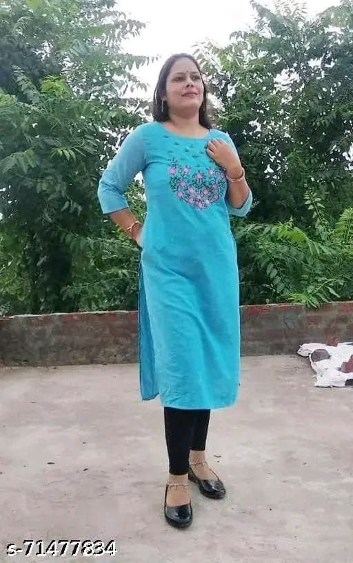 Name: Cotton Kurti For Women With Embroidery ! Women Pure Cotton Straight Kurti ! Pink Cotton Kurti ! Plus size Kurti ! Kurti For Girls ! Causal Wear Kurti ! long Kurti